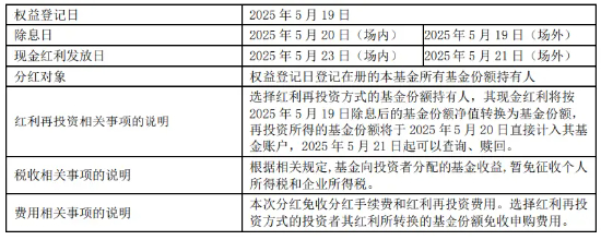 除息日:场外为2025年5月19日,场内为2025年5月20日,当日基金净值将除权除息;