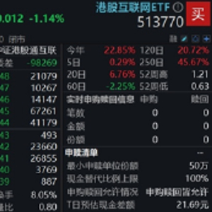 根据公开数据,截至5月14日,港股互联网ETF(513770)跟踪的中证港股通互联网指数持仓腾讯控股权重达14.92%,为第3大权重股;前4大权重尽揽阿里巴巴-W、小米集团-W、腾讯控股、美团-W各赛道互联网龙头,合计权重达59.2%。
