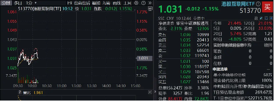 重仓港股互联网龙头的港股互联网ETF(513770)早盘低开,场内价格现跌1.15%,实时成交额1.6亿元。
