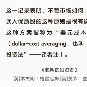 总结而言,格雷厄姆的“美元成本平均法”,以及本土化的“有择时的定投”,均需要被投资资产具备长期内在价值,同时在被投资期间价格位于合理区间。