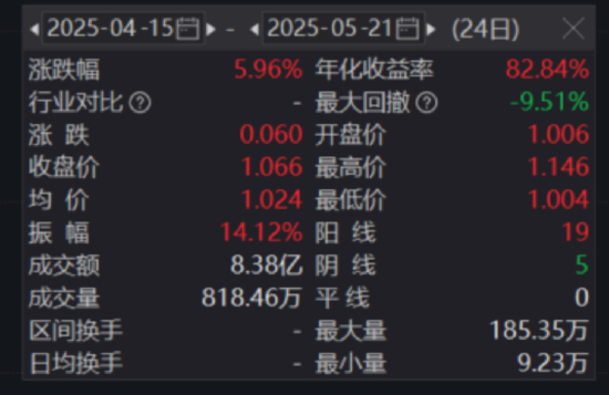 ETF方面,全市场首只上市的300现金流ETF(562080)被动跟踪300现金流指数,一键布局沪深300核心资产中的“现金奶牛”,今日溢价收涨1.23%,收于1.066元,K线录得三连阳!值得注意的是,“562080”自4月15日上市以来的24个交易日里,仅有5个交易日收阴,区间累计上涨5.96%,成为市场稀缺的“防御型高光选手”。
