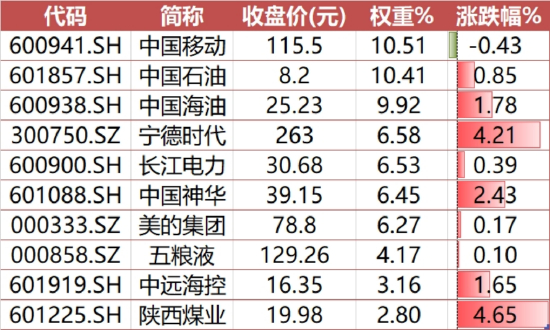 成份股方面,近七成录得正收益,山金国际涨5.10%居首,陕西煤业宁德时代涨超4%,300现金流指数市值前十大成份股前仅中字头“现金牛”——中国移动一家微跌0.43%。