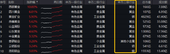 地缘局势引爆,黄金回升走强,COMEX黄金、伦敦现货黄金双双突破3300美元/盎司。中证有色金属指数涨幅前十大成份股中,黄金行业个股占据6席,西部黄金涨停,四川黄金涨超6%,紫金矿业涨近6%。