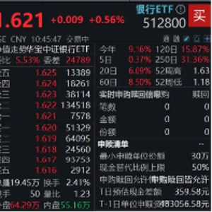 风险提示:银行ETF被动跟踪中证银行指数,该指数基日为2004.12.31,发布于2013.7.15。指数成份股构成根据该指数编制规则适时调整。文中指数成份股仅作展示,个股描述不作为任何形式的投资建议,也不代表管理人旗下任何基金的持仓信息和交易动向。基金管理人评估的该基金风险等级为R3-中风险,适宜平衡型(C3)及以上的投资者。任何在本文出现的信息(包括但不限于个股、评论、预测、图表、指标、理论、任何形式的表述等)均只作为参考,投资人须对任何自主决定的投资行为负责。另,本文中的任何观点、分析及预测不构成对阅读者任何形式的投资建议,亦不对因使用本文内容所引发的直接或间接损失负任何责任。基金投资有风险,基金的过往业绩并不代表其未来表现,基金管理人管理的其他基金的业绩并不构成基金业绩表现的保证,基金投资须谨慎。