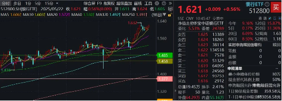 A股顶流银行ETF(512800)低开高走,场内价格现涨0.56%,冲击日线3连阳,实时成交额1.93亿元,交投活跃。