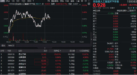 22日午后,AI Agent概念异动拉升,创业板人工智能指数逆市飘红。截至发稿,昆仑万维20CM封板,创意信息涨超8%,万兴科技、易点天下、中文在线、恒信东方等多股跟涨。热门ETF方面,全市场首只的创业板人工智能ETF华宝(159363)场内逆市上涨,成交额超5000万元。