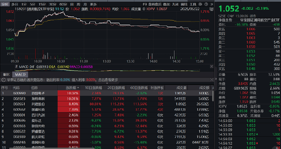 “新质战斗力”代表ETF——通用航空ETF华宝(159231)场内价格一度逆市涨1.71%,最终收跌0.19%,日K三连阴,全天振幅2.66%,弹性显著。