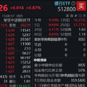风险提示:银行ETF被动跟踪中证银行指数,该指数基日为2004.12.31,发布于2013.7.15。指数成份股构成根据该指数编制规则适时调整。文中指数成份股仅作展示,个股描述不作为任何形式的投资建议,也不代表管理人旗下任何基金的持仓信息和交易动向。基金管理人评估的该基金风险等级为R3-中风险,适宜平衡型(C3)及以上的投资者。任何在本文出现的信息(包括但不限于个股、评论、预测、图表、指标、理论、任何形式的表述等)均只作为参考,投资人须对任何自主决定的投资行为负责。另,本文中的任何观点、分析及预测不构成对阅读者任何形式的投资建议,亦不对因使用本文内容所引发的直接或间接损失负任何责任。基金投资有风险,基金的过往业绩并不代表其未来表现,基金管理人管理的其他基金的业绩并不构成基金业绩表现的保证,基金投资须谨慎。