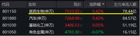 大市午后跳水,医药医疗板块逆市表现!31个申万一级行业仅有3个收涨,医药生物与汽车行业并列第一,并包揽主力净流入排行榜前二。