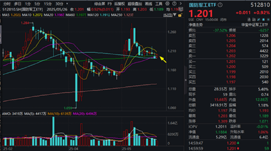国防军工板块今日逆市表现,国防军工ETF(512810)盘中一度涨逾1%,场内收涨0.92%终结两连阴,一举收复20日、60日及半年线等多根均线。