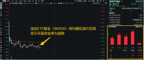 热门ETF方面,重仓软件开发行业的信创ETF基金(562030)深陷水面以下,场内价格现跌1.71%,截至发稿,不足半日,实时成交额已超1000万元,场内频现溢价区间,显示买盘资金更为强势