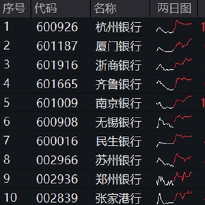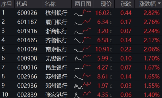 今日银行再度逆市走强,板块个股约9成上涨,城农商行领涨居前,杭州银行、厦门银行、浙商银行、齐鲁银行、南京银行涨逾2%,无锡银行、民生银行等13股涨逾1%。值得一提的是,杭州银行创历史新高。