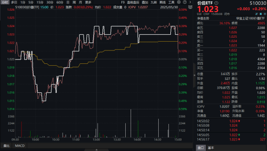 上周五(5月30日),大盘回调之际,以银行为代表的高股息风格个股再度出手护盘。聚焦“高股息+低估值”大盘蓝筹股的价值ETF(510030)开盘短暂下探后迅速拉升,而后持续红盘震荡,截至收盘,场内价格逆市涨0.29%。