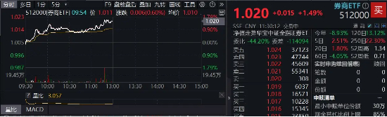 券商ETF(512000)拉升1.5%,光大证券领涨8%,多重因素支持券商板块估值修复