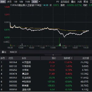 热门ETF方面,同标的指数规模较大、流动性较好的创业板人工智能ETF华宝(159363)盘中急速跳水,场内价格一度下挫逾3.5%回踩5日线,现跌幅缩窄至2%,实时成交额达1.29亿元。