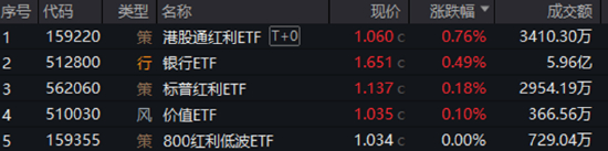 盘面上,资金抱团高股息、高分红资产,兴业银行、南京银行、江苏银行、成都银行股价再创新高,A股顶流银行ETF(512800)场内价格又一次刷新上市以来新高!此外,港股保险、银行等高股息资产同样受关注,港股通红利ETF(159220)场内逆市收涨。