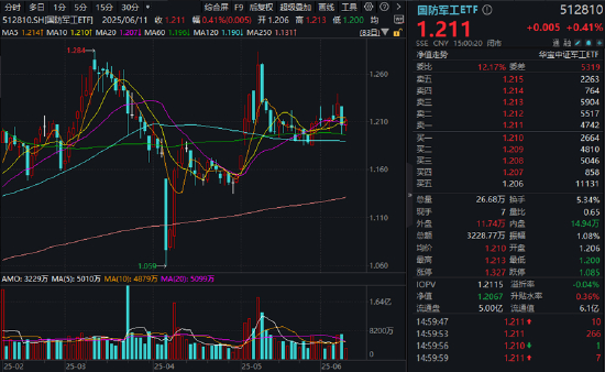 二级市场方面,近期A股国防军工板块走势整体以调整为主,国防军工ETF(512810)今日(6月11日)成功收涨,但未能收复上日失地。