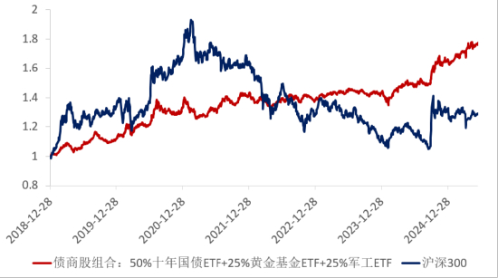 债券方面,十年期国债兼顾底仓防守和一定的久期进攻属性,值得投资者关注。商品方面,黄金的避险属性和货币属性分别支撑其短期和中长期走势。股票方面,军工板块作为地缘政治风险加剧背景下较为稀缺的估值受益板块,叠加国家层面军队建设的高确定性机会,具有中长期配置价值。