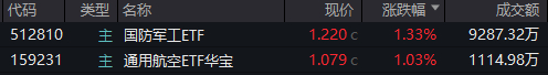 成份股方面,航空装备、地面兵装、军工电子等集体上攻,中航成飞盘中飙涨逾16%,全天成交56.2亿元跃居A股第4!中无人机亦大涨11.25%,际华集团涨停!航天彩虹、国睿科技跟涨超6%。