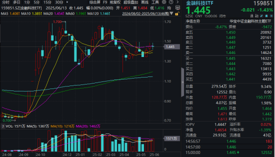 三、科技题材下挫,金融科技ETF(159851)收跌1.43%,楚天龙逼近跌停!下周能否重拾升势?