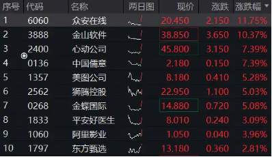 科网龙头走势分化,小米集团-W涨超2%,哔哩哔哩-W涨逾1%,快手-W、腾讯控股、阿里巴巴-W微跌,美团-W跌近2%。此外,众安在线、金山软件两位数领涨,心动公司、中国儒意、金蝶国际等涨幅居前。