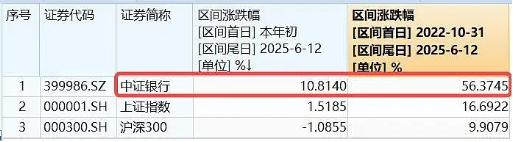 截至6月12日,银行ETF(512800)跟踪的标的指数——中证银行指数今年已累计上涨9.6%,较上证指数、沪深300指数分别超额8.17和10.86个百分点。如从2022年10月的近3年低点算起,中证银行指数累计涨幅超54%,同期上证指数涨幅仅为16%。长期超额收益突出,彰显了银行板块作为防御性底仓资产的配置价值。