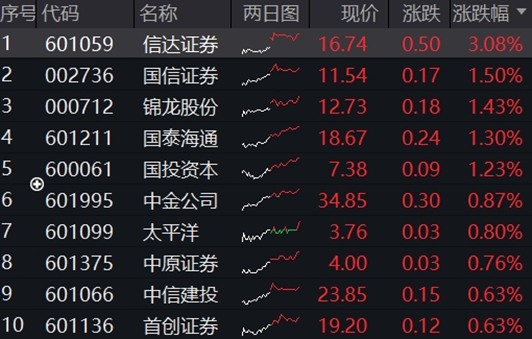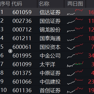 “旗手”行情延续暖意。6月17日,券商股多数上行,中证全指证券公司指数收涨0.35%,表现明显优于大市。其中,信达证券涨逾3%,国信证券、锦龙股份、国泰海通、国投资本涨逾1%。