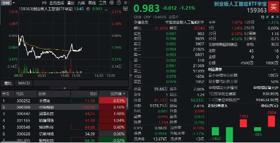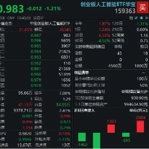 热门ETF方面,同标的指数规模较大、流动性较好的创业板人工智能ETF华宝(159363)盘中一度下探逾2%,午后跌幅明显收窄,中频现溢价交易,显示买盘活跃。资金面上,159363已获资金实时净申购2700万份。