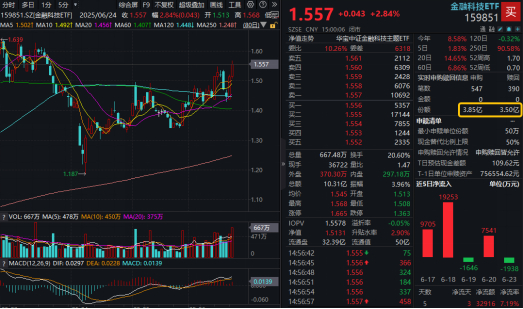 一、【继续爆发!金融科技ETF(159851)放量再涨2.84%,创近3个月新高!两股强势封板,东财成交超百亿】