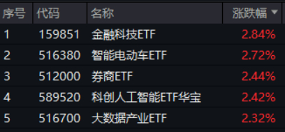 热门ETF方面,A股顶流券商ETF(512000)高开高走,场内价格一度涨逾3%,收涨2.44%,全天成交额11.35亿元,量能环比激增115%。