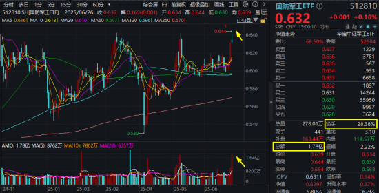 冲高回落,“阅兵牛”还在吗?国防军工ETF有迹可循,成交创3个月新高,换手率飙至28%断层领先!
