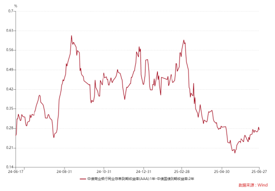 从市场环境来看,近期利率债债基久期大幅抬升至新高水平。短期来看,债市做多拥挤度较高,行情可能迎来阶段性反复,存在止盈压力的释放需求。中期维度上,机构情绪具有一定持续性,其背后的基本面与资金面变化亦有趋势性。而从基本面与资金面角度出发,由于目前内外需的转弱趋势以及资金面的宽松趋势均有较强的确定性,本轮债市行情仍将延续。从货币政策空间来看,虽然目前政策利率处于较低水平,但人民币升值压力较大、市场资金利率较高的背景仍然利好宽松交易。当前同业存单与2年期国债利差相比央行购债时期明显偏低,央行若重启购债,则将推动短端利率下行,债券市场或迎来牛陡。后续短端利率如若进一步下行,亦有望带动长端利率突破前期低点。
