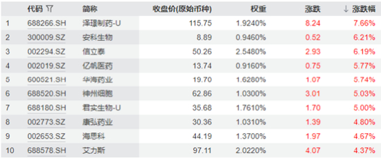 从成份股表现来看,40涨2平8跌,创新药概念股强势领涨!泽璟制药涨7.66%居首,安科生物、信立泰涨超6%,亿帆生物、华海药业、神州细胞等多股涨超5%。
