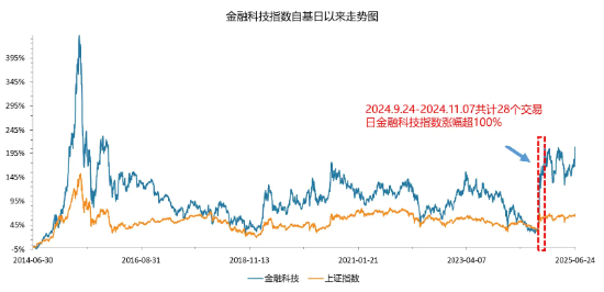 注:2014.6.30-2025.6.25,金融科技ETF被动跟踪中证金融科技主题指数,该指数基日为2014.6.30,发布日期为2017.6.22,该指数2020-2024年年度涨跌幅分别为:10.46%7.16%-21.40%10.03%31.54%指数成份股构成根据该指数编制规则适时调整,其回测历史业绩预示指数未来表现