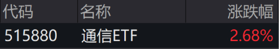 今日通信ETF(515880)开盘后震荡走高,收涨2.68%。