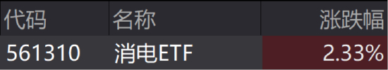 今日消电ETF(561310)开盘之后震荡走高,下午再度上涨,收涨2.33%。