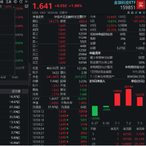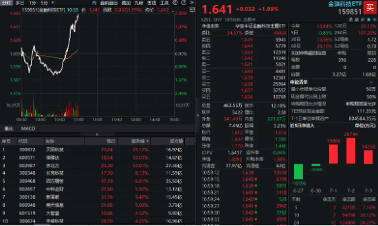 热门ETF方面,金融科技ETF(159851)快速拉升翻红,场内价格涨2%,实时放量成交超7亿元,资金继续大额净流入,实时净申购份额达1.62亿份!