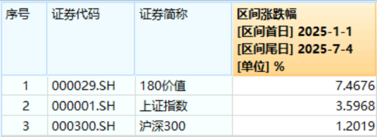 注:统计区间为2025年1月1日-2025年7月4日,180价值指数近5个完整年度涨跌幅分别为:2020年,-3.17%;2021年,-3.37%;2022年,-11.74%;2023年,-4.13%;2024年,27.09%。指数成份股构成根据该指数编制规则适时调整,其回测历史业绩不预示指数未来表现。