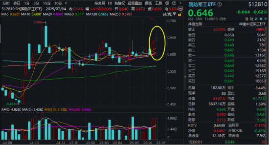 图:国防军工ETF(512810)周K走势(截至2025.7.4)