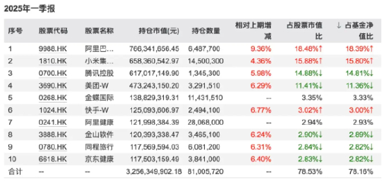 (港股互联网ETF(513770)第一季度的前十大持仓)