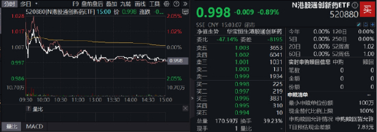 港股通创新药ETF(520880)早盘高开后冲高回落,场内价格收跌0.89%,全天成交额1.72亿元。