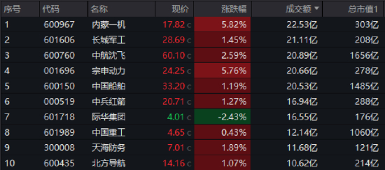 就国防军工板块整体而言,年内催化不断,热度持续升温。上周,国防军工(申万)单周成交额达4299亿元,创年内新高,历史次高。