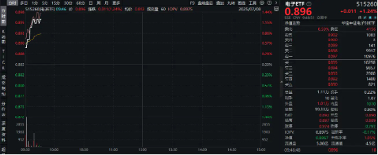 消息面上,电子ETF(515260)标的指数成份股工业富联7月7日盘后公告称,预计2025年第二季度实现归属于母公司所有者的净利润67.27亿元至69.27亿元,同比上升47.72%至52.11%。