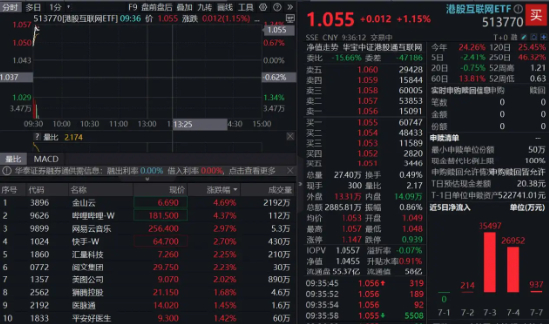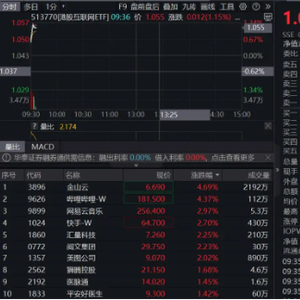 7月8日早盘,港股小幅高开,恒指、恒科指分别涨0.17%、0.28%。盘面上,科网龙头多数上涨,哔哩哔哩-W、金山云涨超4%,快手-W涨超2%,小米集团-W涨逾1%,腾讯控股跟涨;阿里巴巴-W、美团-W分别下跌0.66%、1.5%。重仓港股互联网龙头的港股互联网ETF(513770)早盘高开,场内价格现涨1.15%。