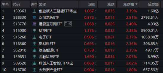 AI王者归来,率领科技成长强势回归!“AI双子星”创业板人工智能ETF华宝(159363)、科创人工智能ETF华宝(589520)携手上攻,场内劲涨3.39%、2.02%。硬科技宽基——双创龙头ETF(588330)、科技龙头先锋——科技ETF(515000)场内双双涨超2%。