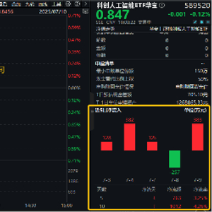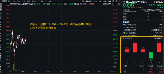 今日(7月10日)重点布局国产AI产业链的科创人工智能ETF华宝(589520)场内飘绿,但频现溢价区间,显示买盘资金更为强势,或有资金逢跌介入!事实上,上交所数据显示,该ETF近10个交易日中,有7个交易日获资金净流入,累计金额1012万元。