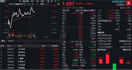 金融科技午后二次拉升!中科金财涨停,159851持续溢价交易!大盘+题材共振,板块配置价值凸显