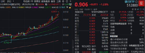 从板块贡献来看,大金融功不可没。券商、银行携手发力,逾百亿体量券商ETF(512000)、银行ETF(512800)场内双双涨逾1.2%,其中银行ETF价格续创新高!聚焦大盘蓝筹的价值ETF(510030)场内同步上涨1.45%。