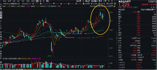 或由于两大巨头宣布稀土提价,今日(7月11日)稀土概念股大涨,中色股份、北方稀土、盛和资源3股涨停,中国稀土涨超9%,揽尽有色金属行业龙头的有色龙头ETF(159876)场内价格一度涨超3.1%,现涨2.51%,盘中再度刷新年内高点(1.233元)。
