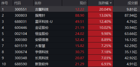 “稳定币概念+互联网券商”双双走强,金融科技指数涨超3.5%再次刷新发布以来新高!成份股大面积飘红,古鳌科技20CM涨停,金证股份、恒宝股份封板,互联网券商龙头指南针大涨超12%创历史新高,安硕信息、大智慧、宇信科技、长亮、拓尔思、财富趋势、信安世纪等多股涨超5%。